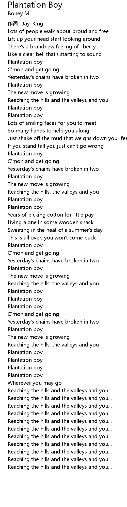 | 歌曲 | Plantation Boy |