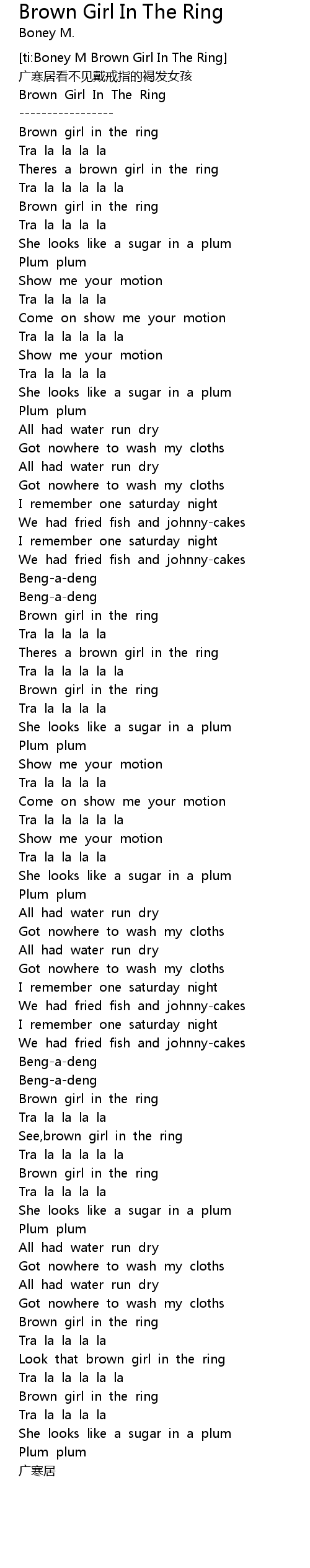 | [02:34.27] | Brown girl in the ring |