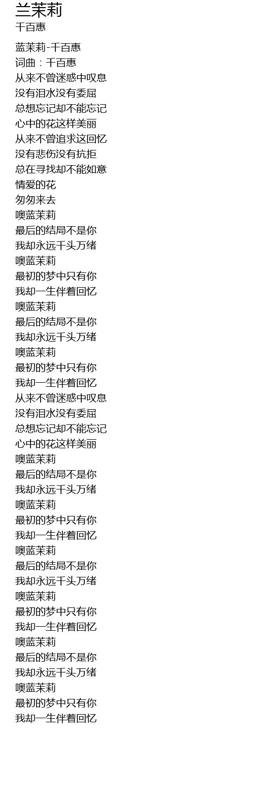 | [00:01.167] | 蓝茉莉-千百惠 |