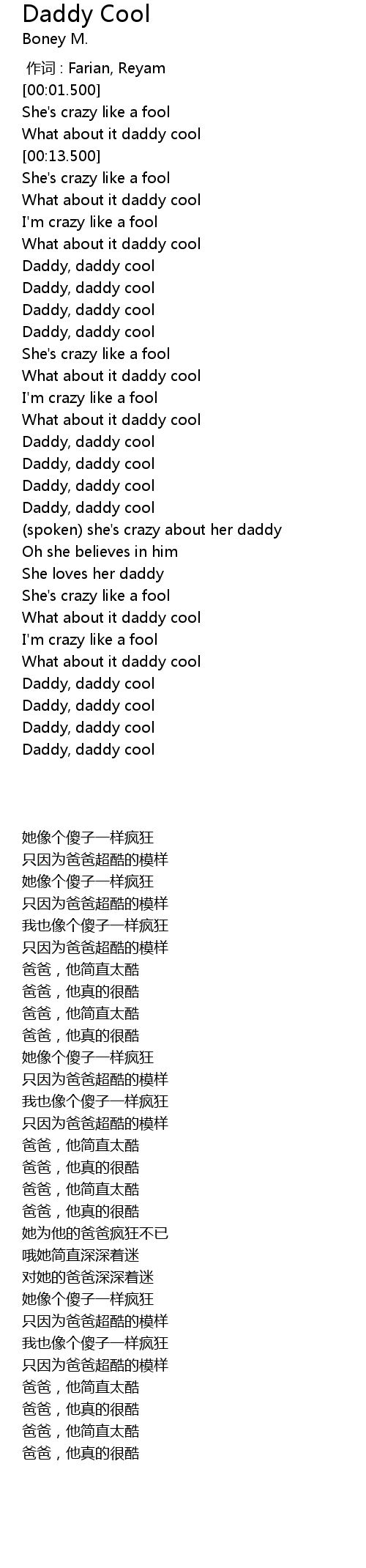 | [01:55.500] | Daddy, daddy cool |