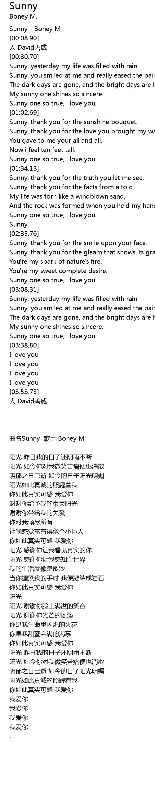 | [00:02.27] | 曲名Sunny 歌手 Boney M |