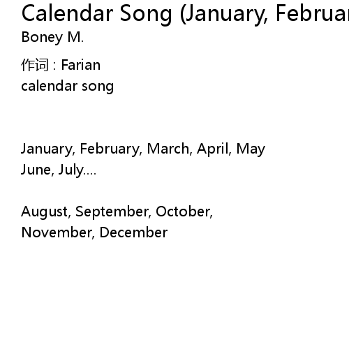 | 歌曲 | Calendar Song (January, February, March...) |