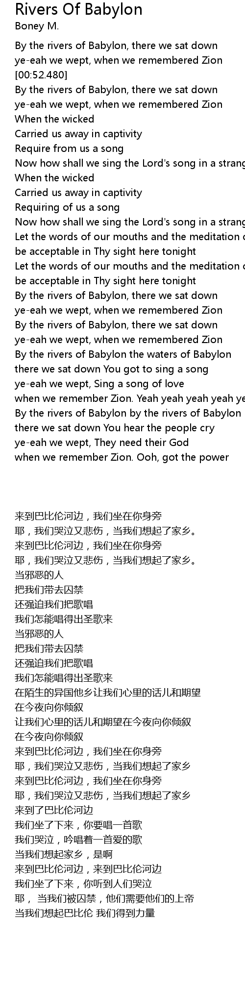 when we remember Zion. Yeah yeah yeah yeah yeah |