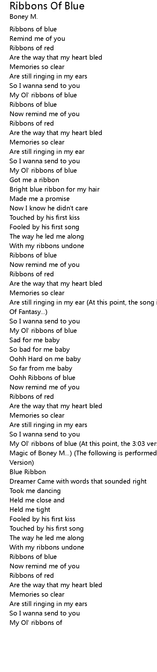 My Ol' ribbons of blue |