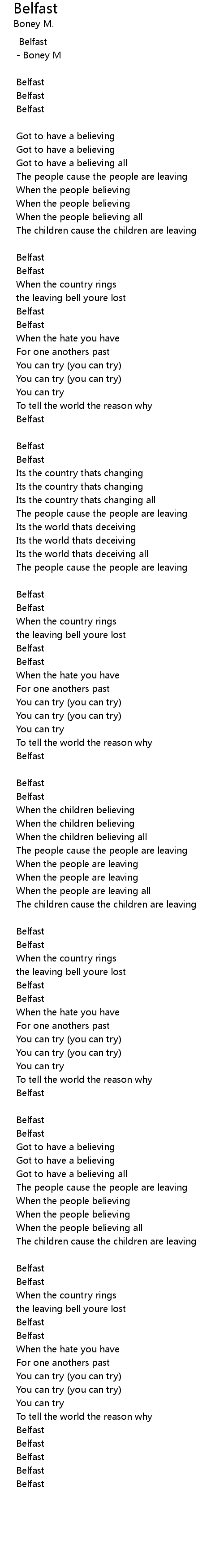 Belfast 歌词