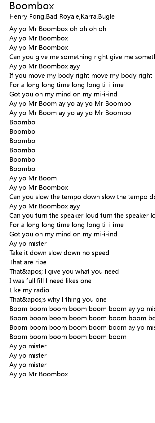 Ay yo Mr Boom ay yo ay yo Mr Boombo |