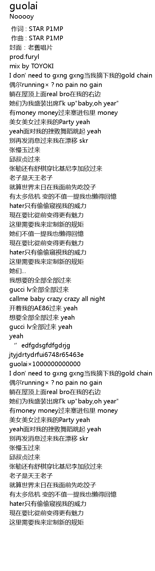 | [01:34.326] | gucci lv quan bu guo lai yeah |