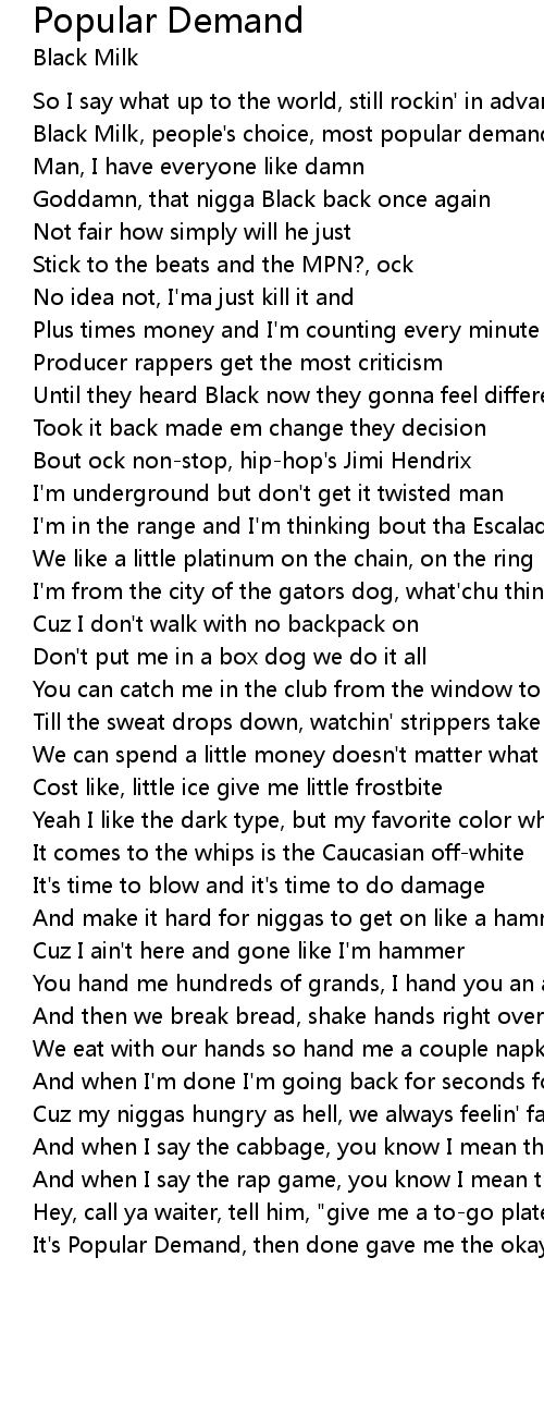 Black Milk, people's choice, most popular demand, I |