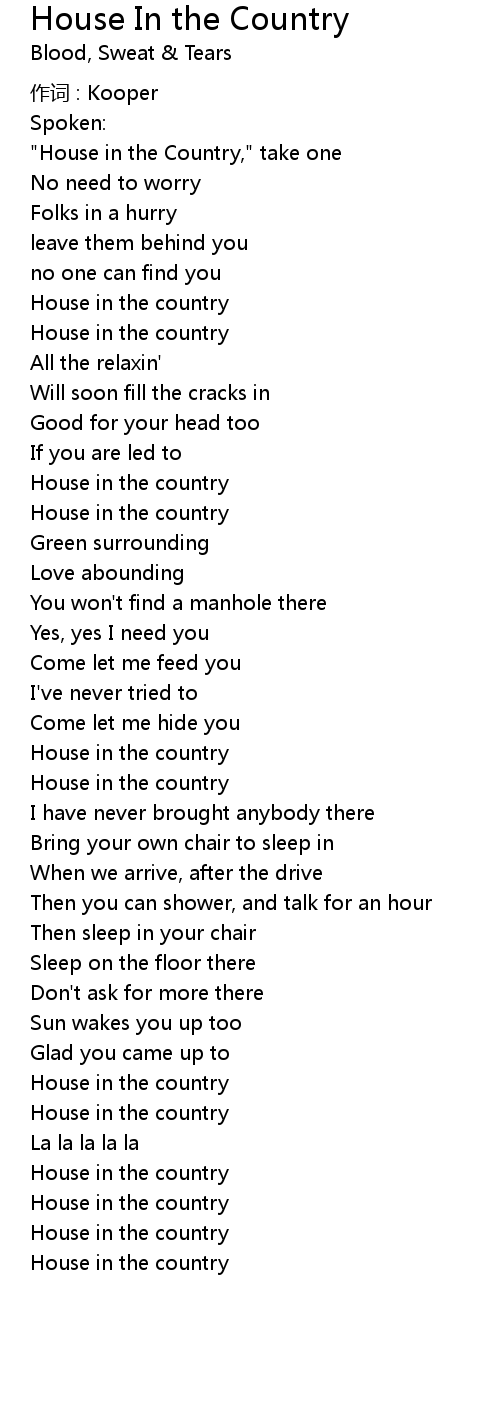 | 歌曲 | House In the Country |