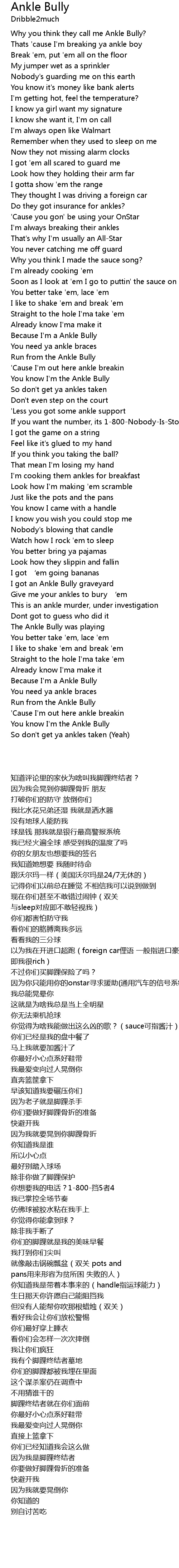| [00:16.201] | Thats ' cause I' m breaking ya ankle boy |