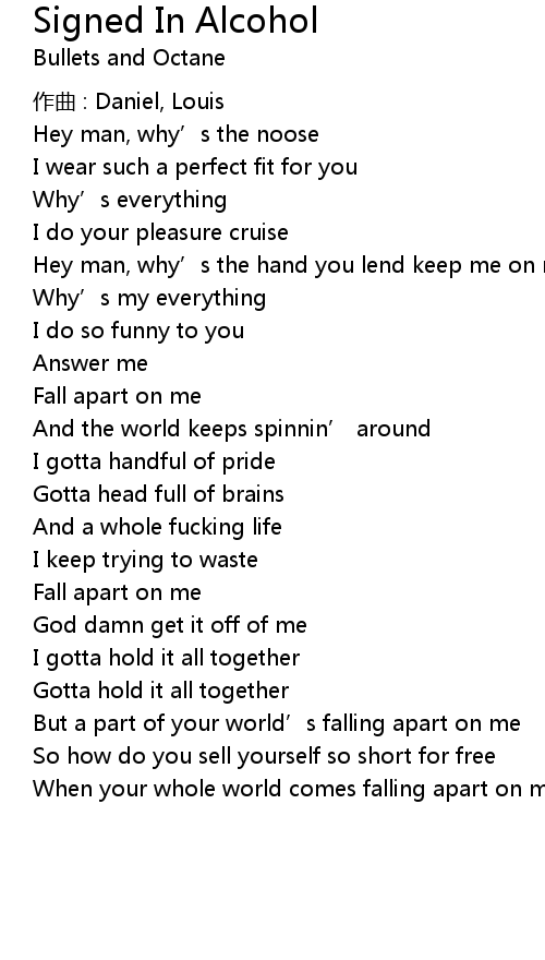 | 歌曲 | Signed In Alcohol |