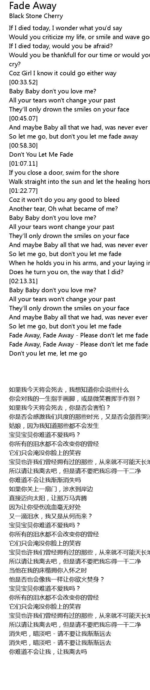 Fade Away, Fade Away - Please don't let me fade |