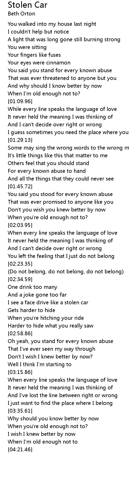 I see a face drive like a stolen car |