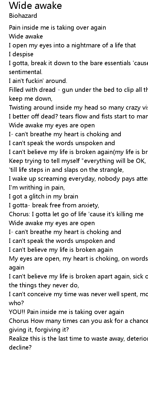My eyes are open, my heart is choking, on words unspoken, my life is broken again |