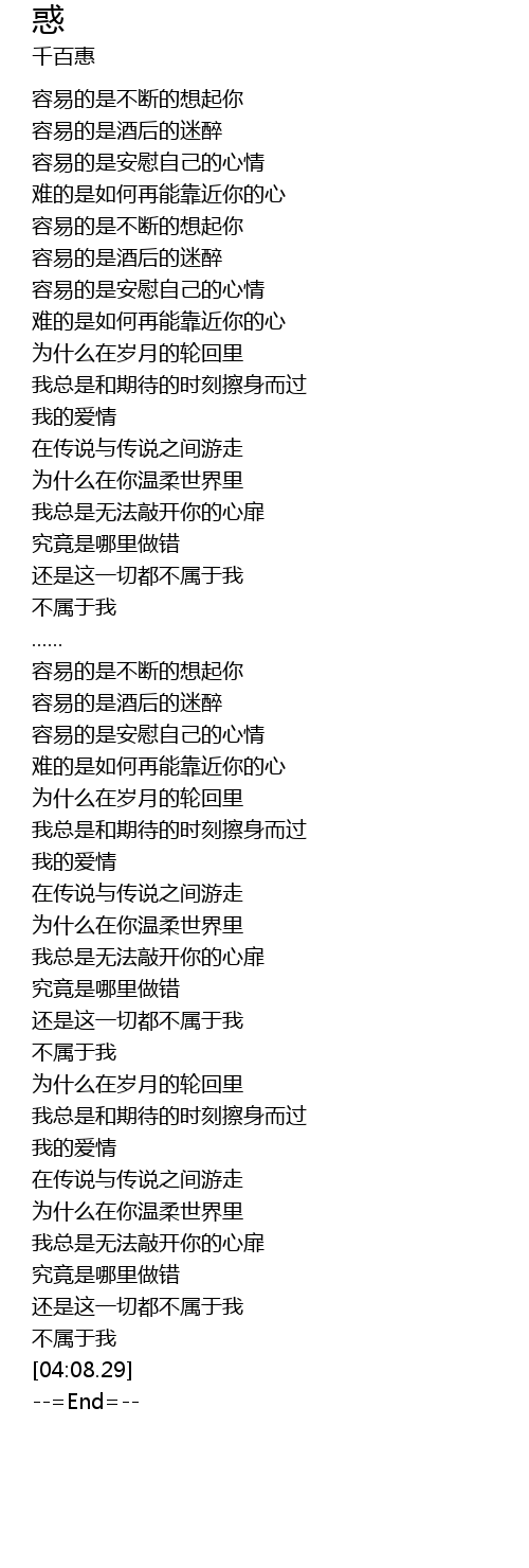 | [00:24.94] | róng yì de shì jiǔ hòu de mí zuì |
