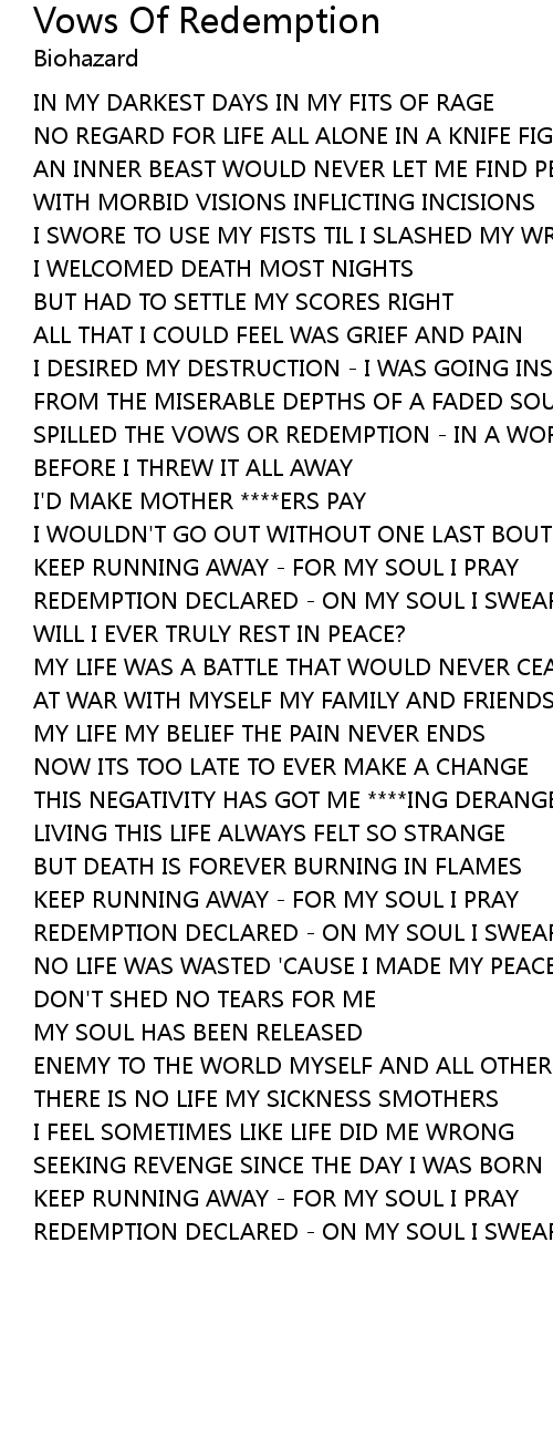 SPILLED THE VOWS OR REDEMPTION - IN A WORLD SO COLD |