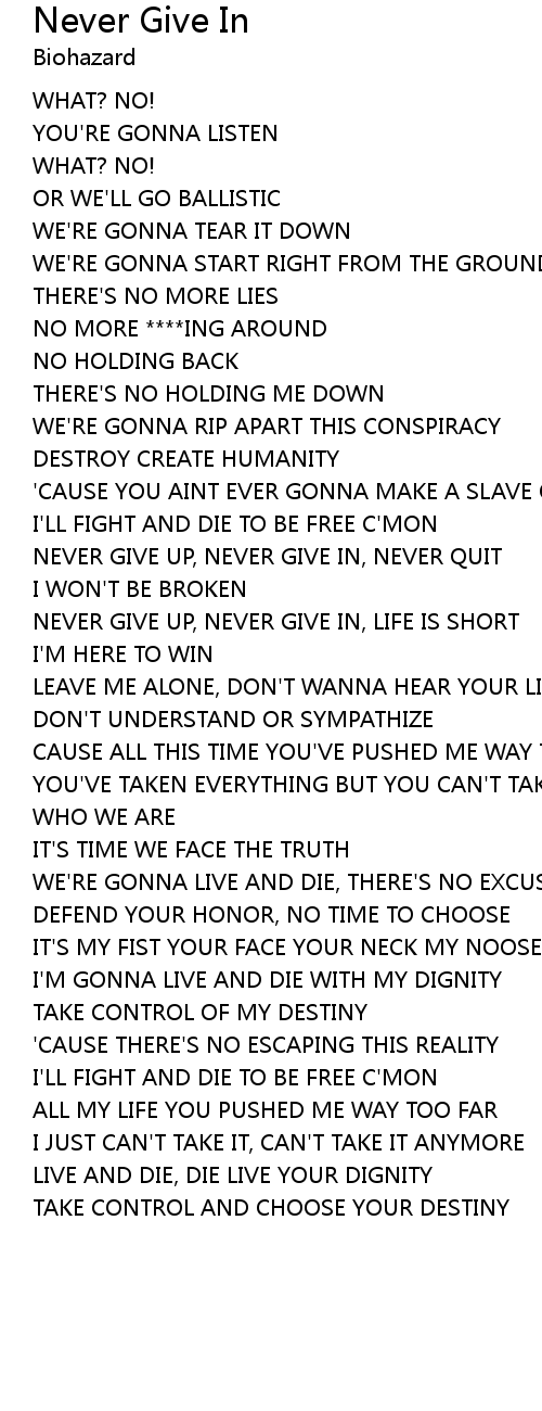NEVER GIVE UP, NEVER GIVE IN, NEVER QUIT |
