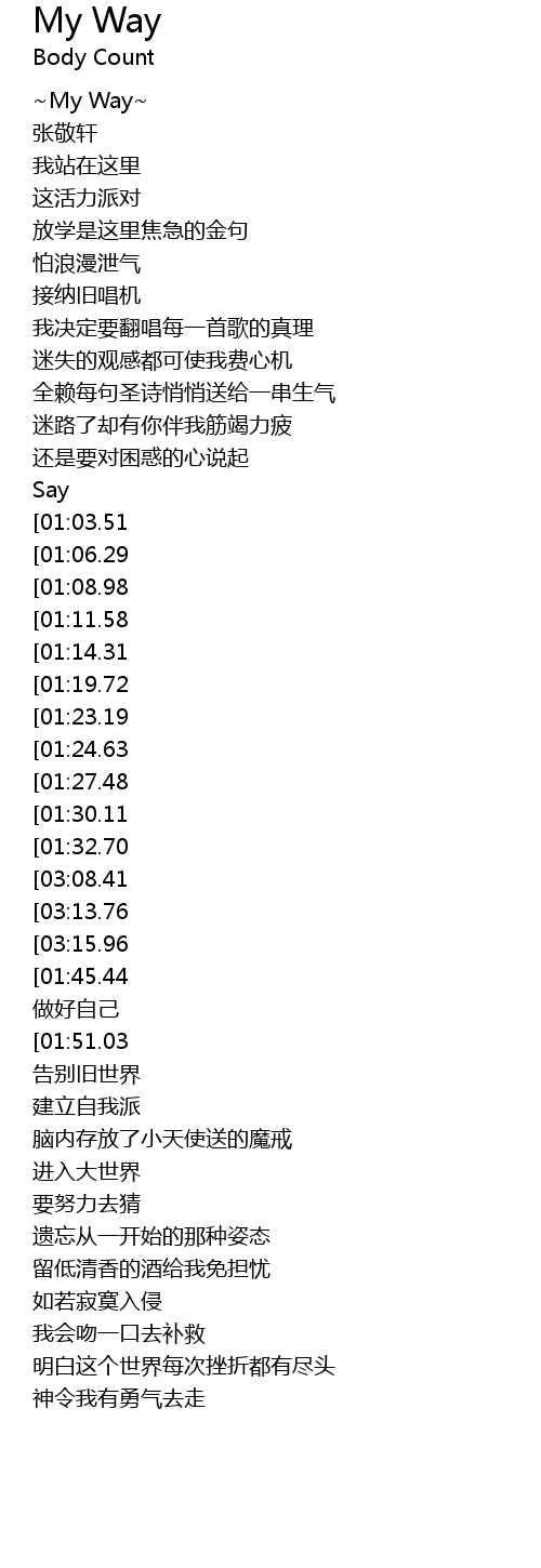 | [00:58.98] | hai shi yao dui kun huo de xin shuo qi |