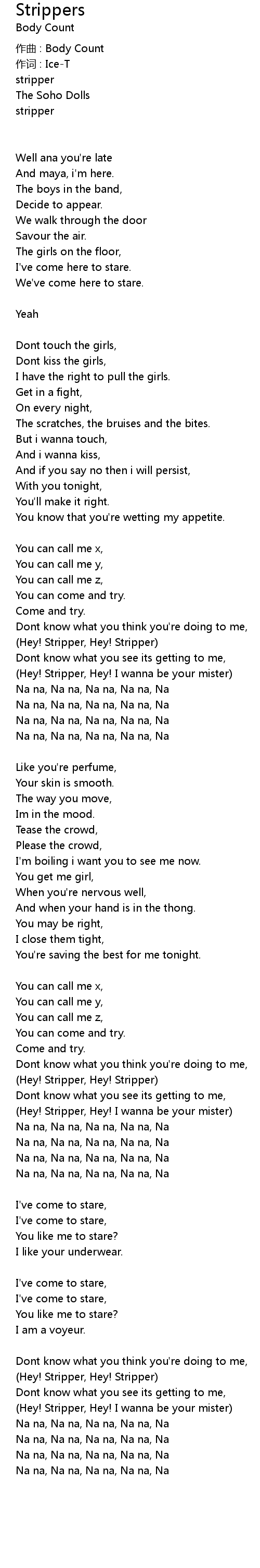 | Hey! Stripper, Hey! I wanna be your mister | |