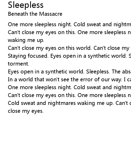 Can't close my eyes on this. One more sleepless night. Cold sweat and nightmares waking me up. |