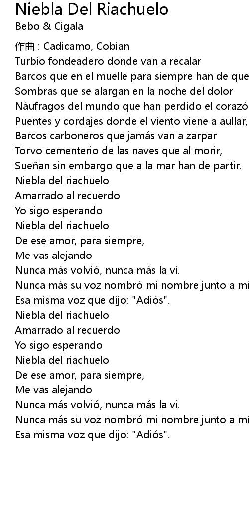 | 歌曲 | Niebla Del Riachuelo |