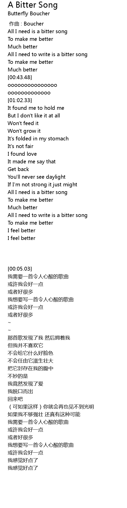 | [01:37.97] | All I need is a bitter song |