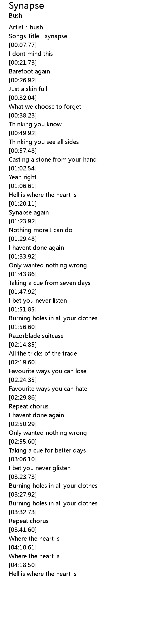 | [01:22.67] | Synapse again |