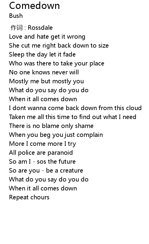 | 歌曲 | Comedown |