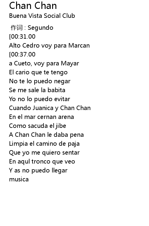 | 歌曲 | Chan Chan |