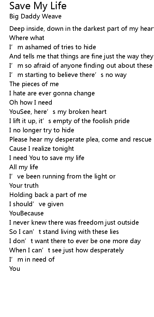 | I need You to save my life | |