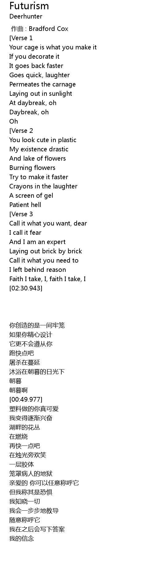 | [00:00.000] | 作曲 : Bradford Cox |