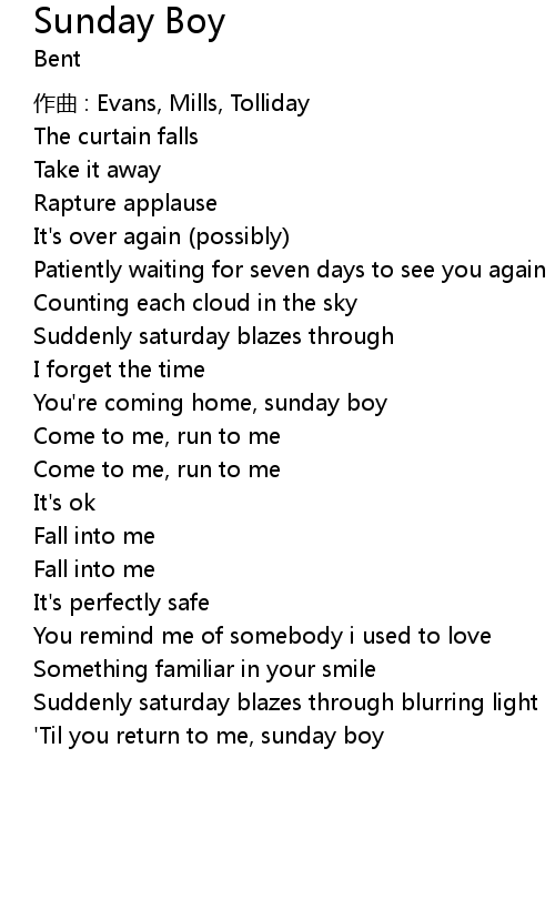 | ' Til you return to me, sunday boy |
