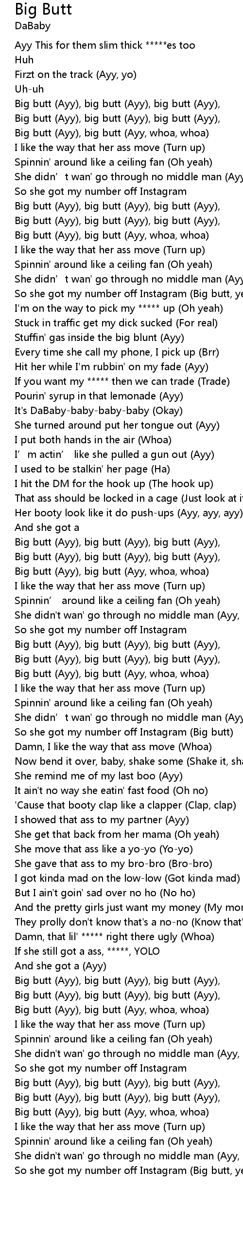 | [02:25.18] | Big butt (Ayy), big butt (Ayy), big butt (Ayy), |