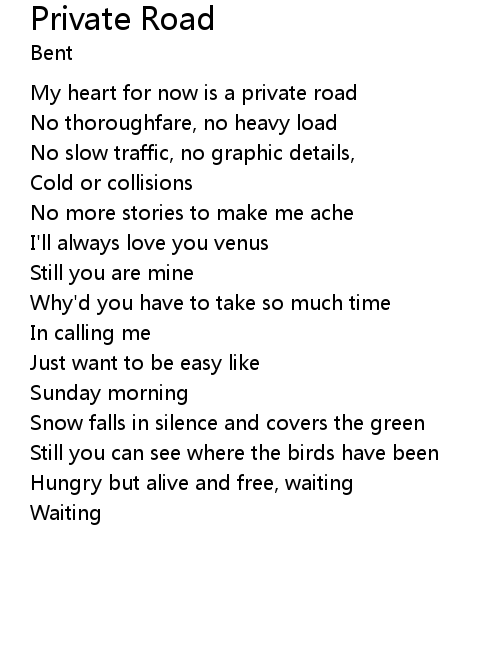 | My heart for now is a private road | |