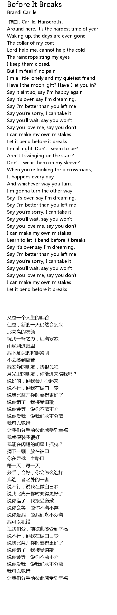 | [00:00.00] | zuo qu : Carlile, Hanseroth ... |