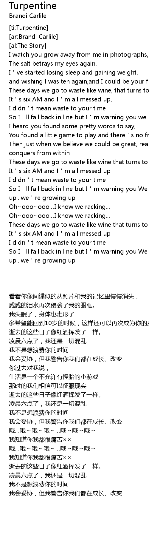 | [02:16.66] | These days we go to waste like wine that turns to turpentine |