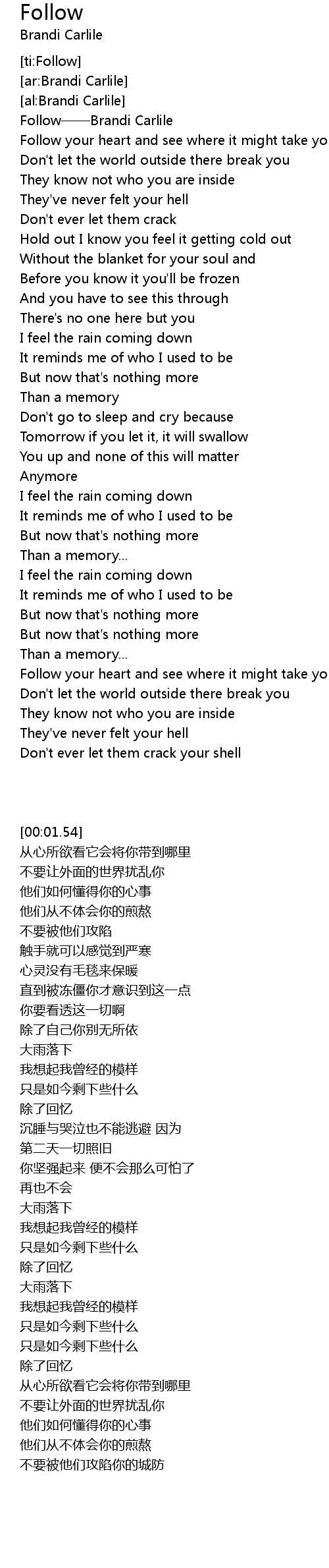| [00:01.54] | Follow——Brandi Carlile |