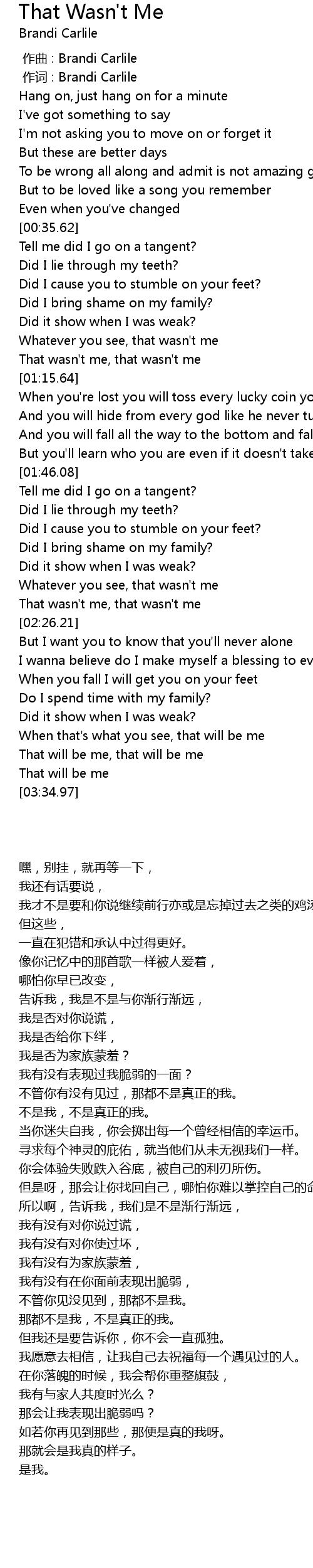 | [02:19.91] | That wasn' t me, that wasn' t me |
