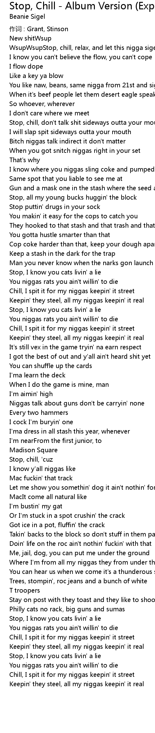 | 歌曲 | Stop, Chill - Album Version (Explicit) |