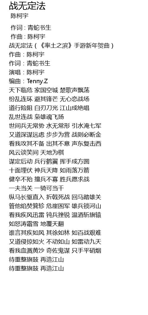 | [00:02.945] | 战无定法(《率土之滨》手游新年贺曲) |