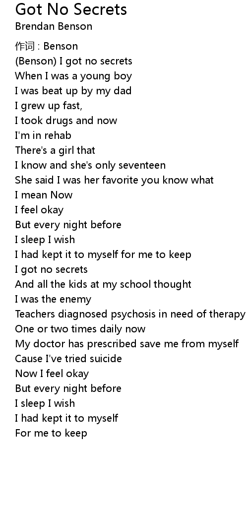 | Benson I got no secrets | |