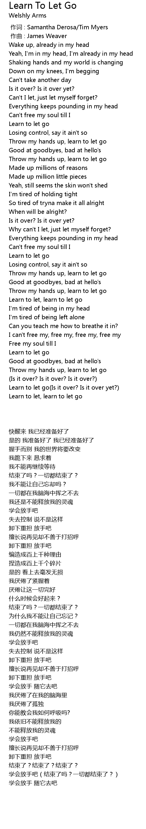 | [03:20.10] | Learn to let go(Is it over? Is it over yet?) |