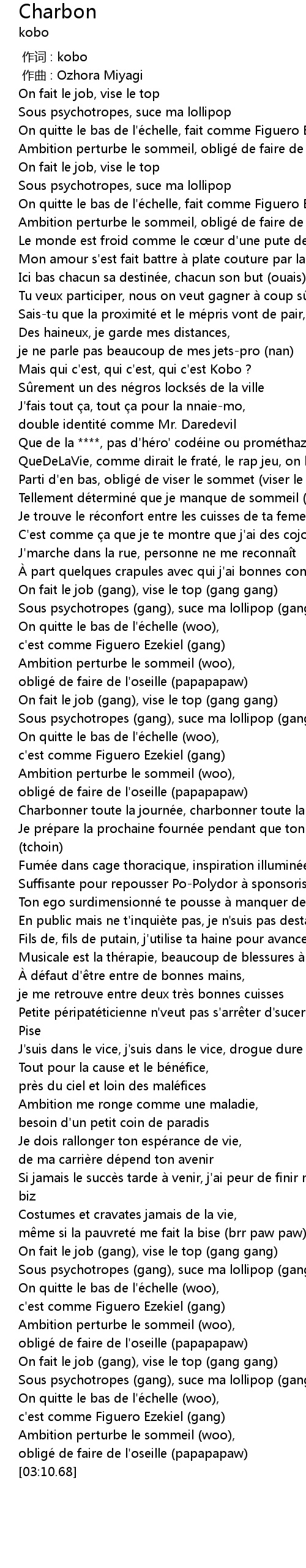 | [03:08.38] | obligé de faire de l'oseille (papapapaw) |