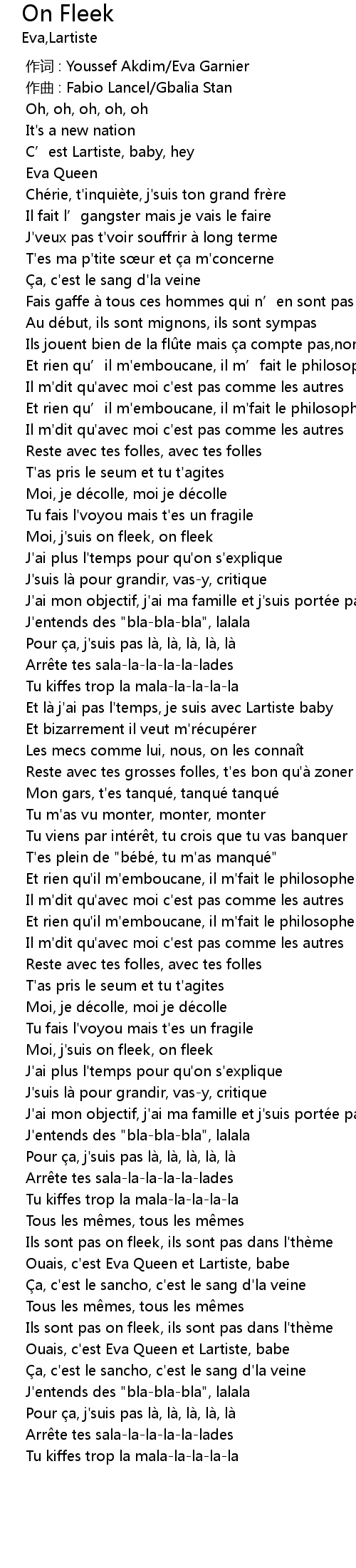 | [01:47.936] | Moi, j' suis on fleek, on fleek |