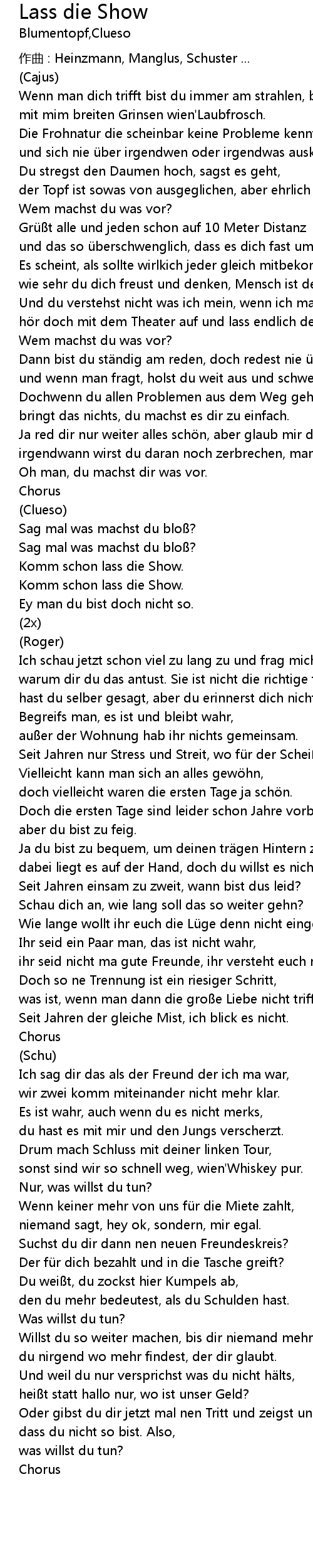 | 歌曲 | Lass die Show |