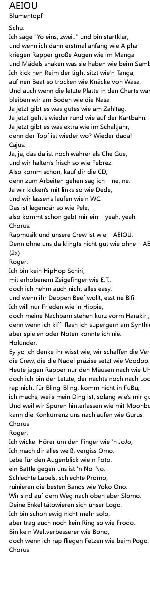 | Rapmusik und unsere Crew ist wie AEIOU. | |