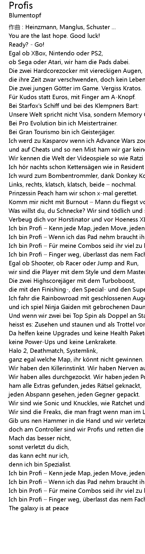 | Ich bin Profi Kenn jede Map, jeden Move, jeden Abspann | |