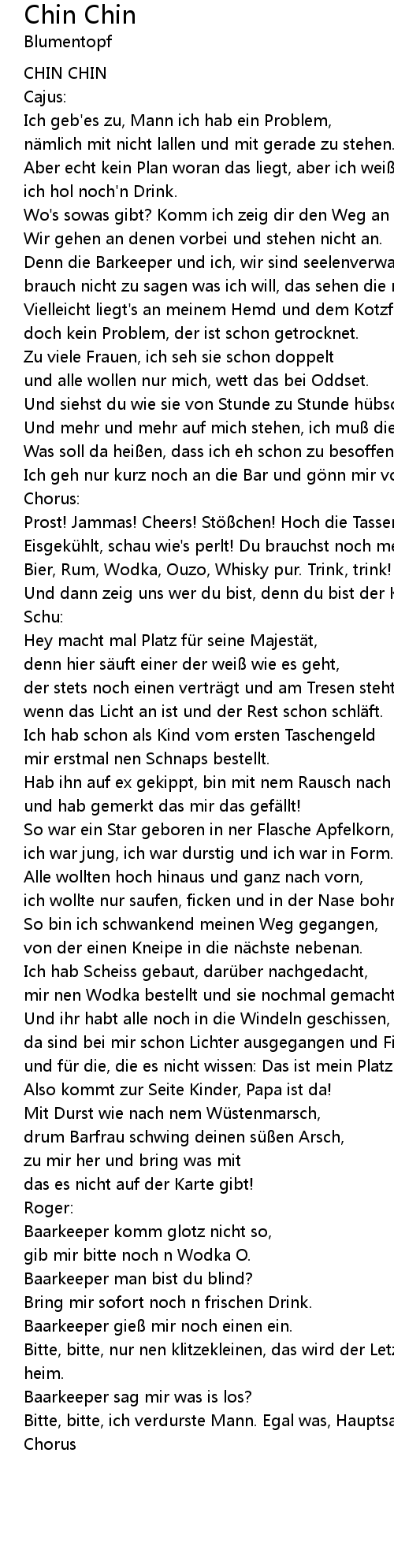| Bier, Rum, Wodka, Ouzo, Whisky pur. Trink, trink! | |