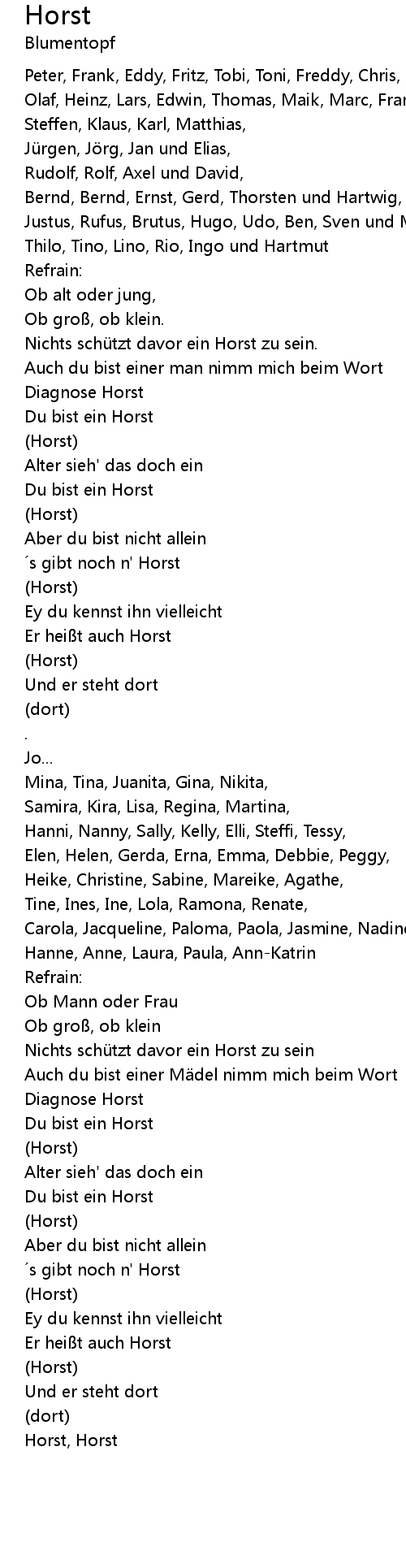 | Nichts schü tzt davor ein Horst zu sein. | |
