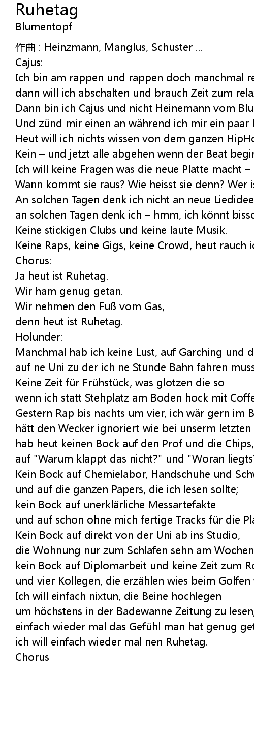 | Heut will ich nichts wissen von dem ganzen HipHopDing. | |